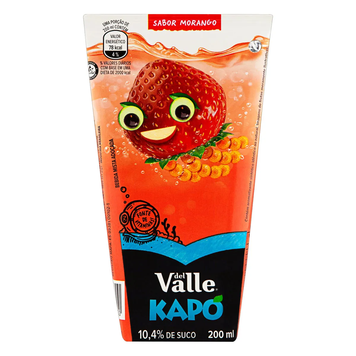 Kapo sabor morango em embalagem prática de 200ml, perfeito para refrescar seu dia.