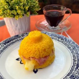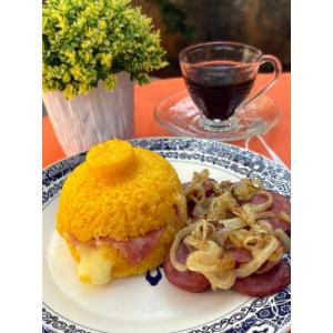 Cuscuz macio com recheio cremoso de queijo e fatias saborosas de presunto, puro prazer.