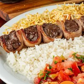 ARROZ , FEIJAO TROPEIRO , MANDIOCA , VINAGRETE + 04 ESPETOS + SUKITA 2LTS
