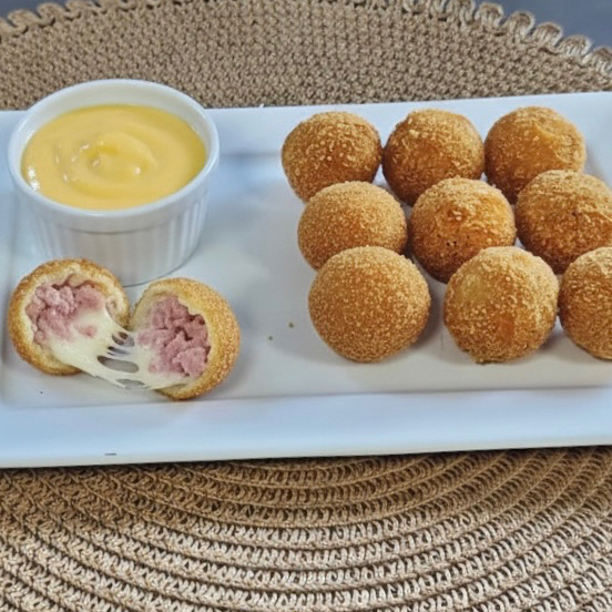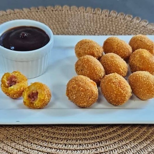 50 Salgados sendo 2 sabores com 25 unidades + 5 Churros de doce de leite + 1 Guaraná 1L