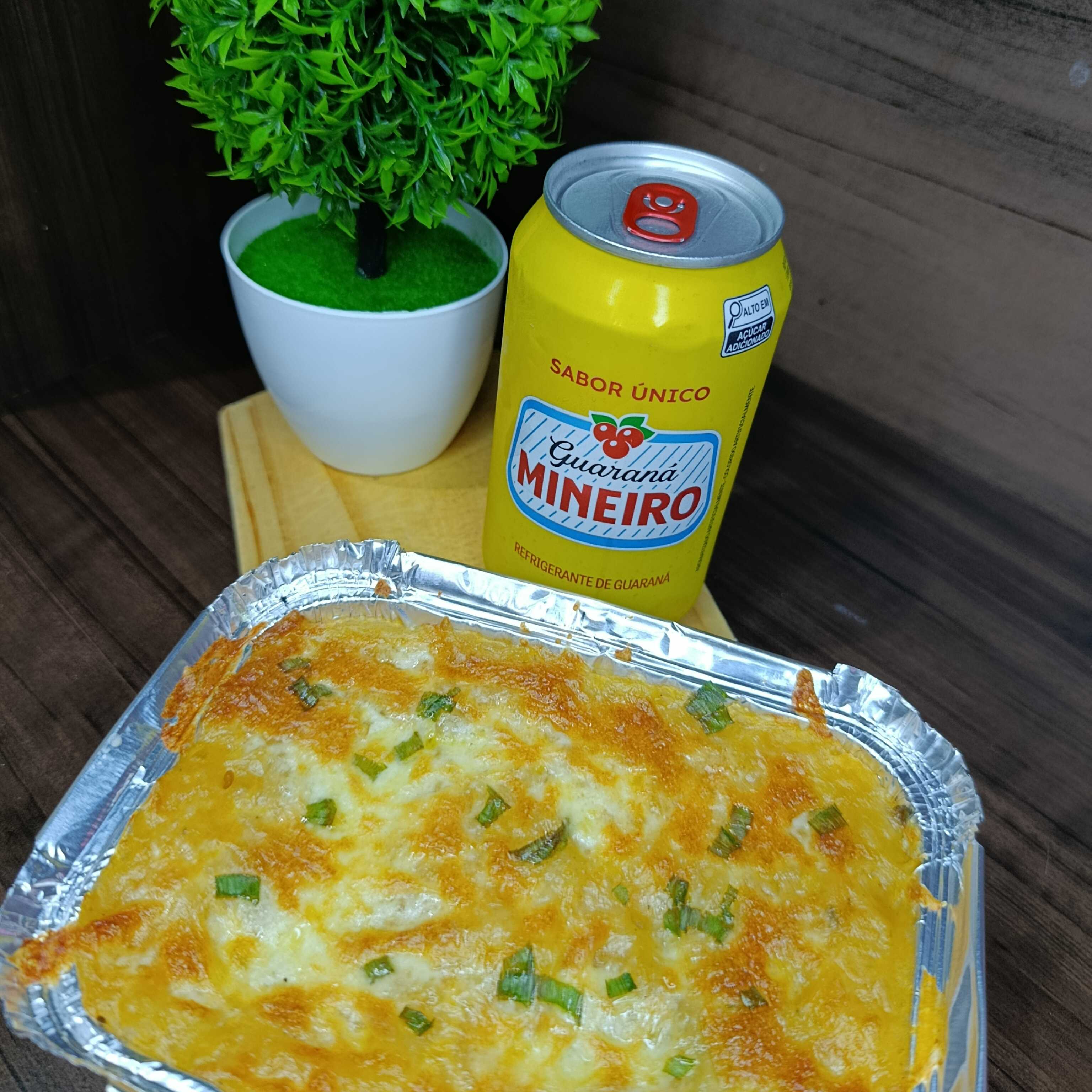 Uma saborosa lansanha de carne moída feita no molho vermelho, com presunto , e uma saborosa camada de creme de batata inglesa e queijo mussarela, pra acompanhar não poderia faltar um goianinho bem gelado