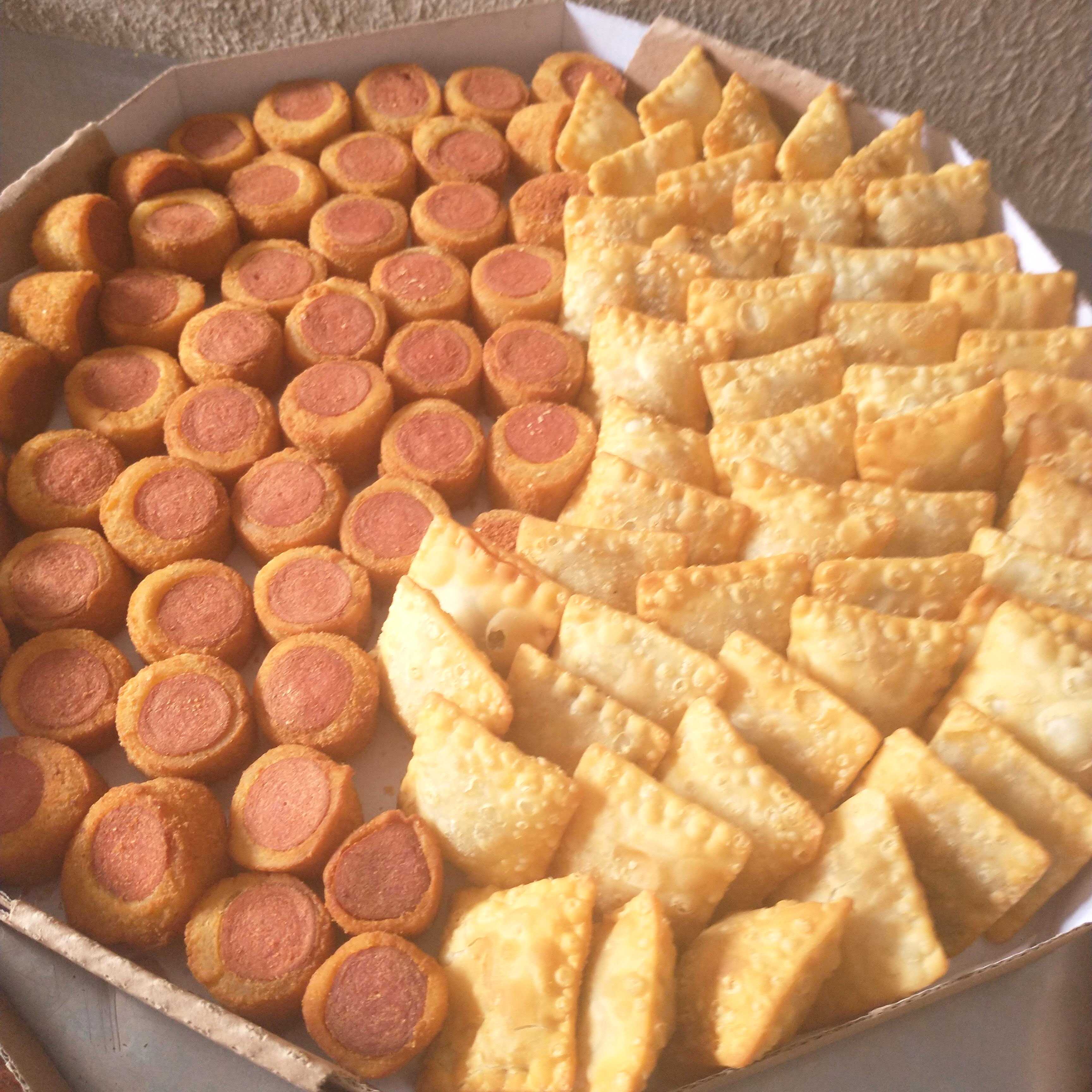 50 unds ,pastelzinho de carne + enroladinho de salsichas