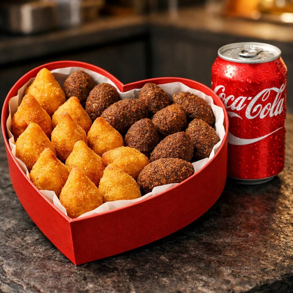 Combo Casal (50 Mini Salgados) + 2 Refrigerante Lata 350 Ml