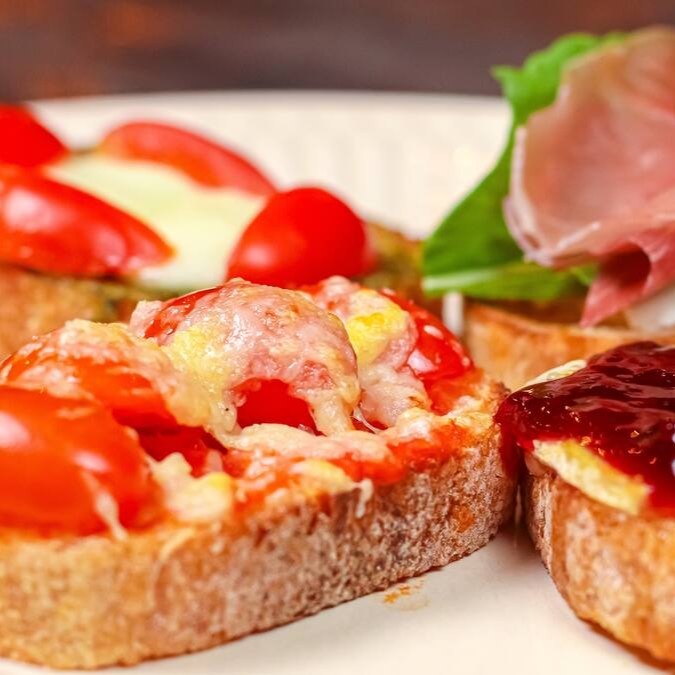 Quarteto De Bruschettas - Caprese, Parma, Clássica E Frutas Vermelhas