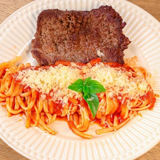 Delicie-se com o nosso 'Prato Kids' da categoria 'Massas da Casa'. Um irresistível macarrão tipo linguine, cuidadosamente preparado e banhado em um rico molho pomodoro, feito com tomates selecionados. Juntamente com o macarrão, temos um suculento filé mignon, perfeitamente grelhado para agradar ao paladar dos pequenos. Um prato equilibrado e saboroso que as crianças vão adorar!