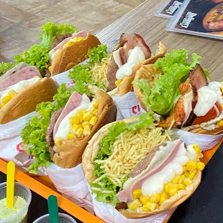 PAO,2 HAMBURGUER , 2 MUSSARELA,2 PRESUNTO, 2 OVO, 2 BACON , 2 SALSICHA , ALFACE , TOMATE , MILHO, ABACAXI , BATATA PALHA , PURE DE BATATA