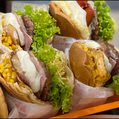 pao hamburg presunto e mussarela bacon alface tomate milho batata palha pure