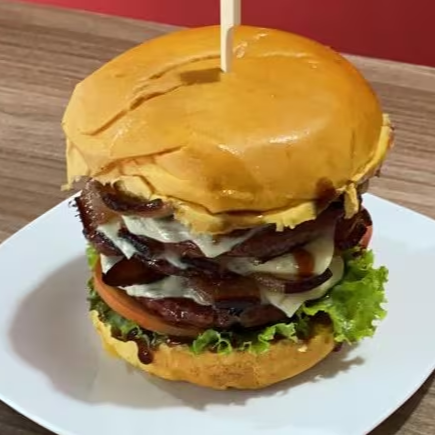 PAO BRIOCHE , HAMBURGUER , BACON , CHEDDAR , ALFACE , TOMATE