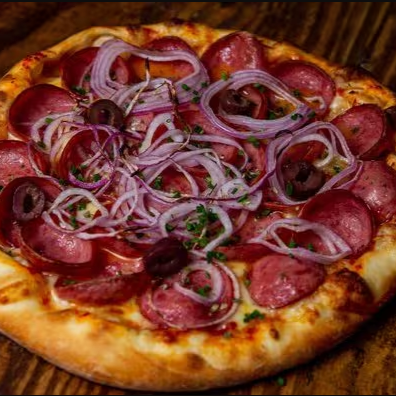 MASSA , MOLHO, MUSSARELA ,CALABRESA, CEBOLA AZEITONA E OREGANO