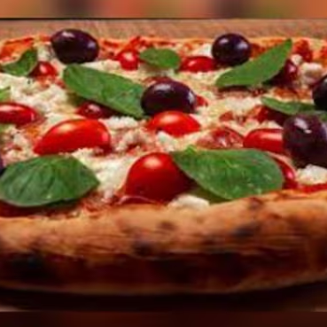 MASSA , MOLHO, MUSSARELA , TOMATE CEREJA , MA,JERICAO, AZEITONA E OREGANO