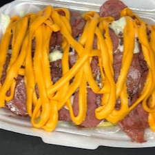 Pão sirio, 2 carnes, 3 mussarela, 2 ovos,2 bacon, cheddar ou catupiry.