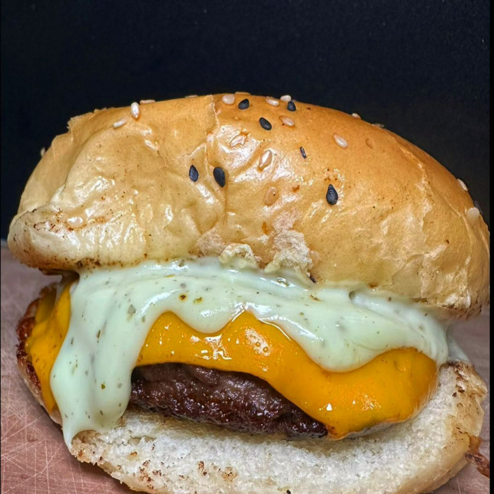 pão brioche, hamburguer , cheddar, molho artesanal de ervas.