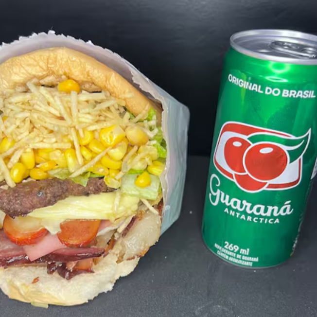 O 'Combo Supremo' da categoria 'Combos Imperdíveis' é uma combinação atraente e deliciosa! Composto por um generoso X-Tudo de hambúrguer, recheado com ingredientes frescos e suculentos. Acompanha uma refrigerante em lata, geladinho e revigorante, ideal para saciar a sua sede. E para completar, uma porção média das nossas renomadas batatas supremas, crocantes e douradas, cobertas com um cremoso e saboroso cheddar, e finalizadas com pedaços de bacon crocante. Uma combinação que é um autêntico deleite para o paladar!