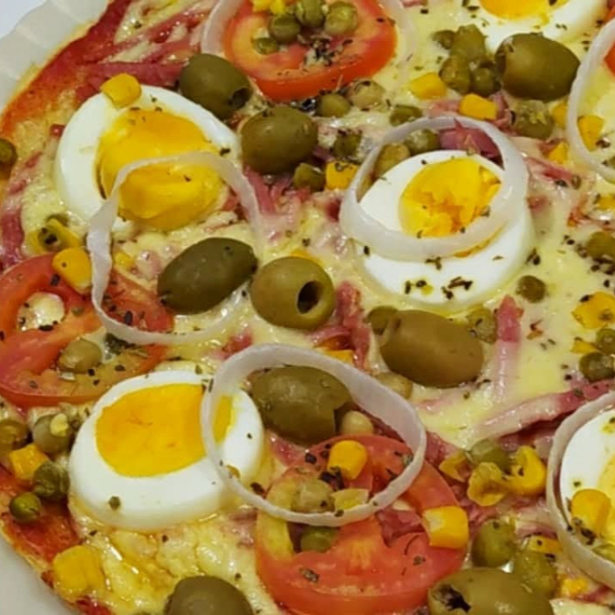 Molho, Mussarela, Presunto, Tomate, Ovo e Orégano