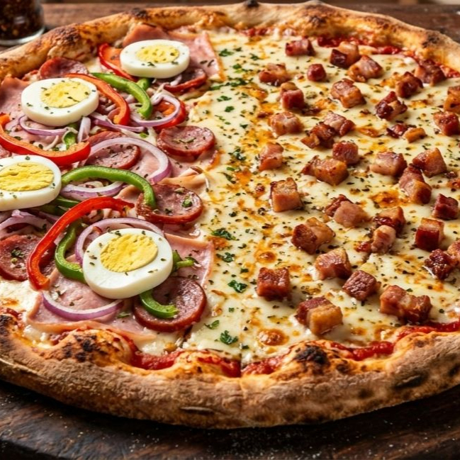 Pizza Metade Calabresa, Metade Portuguesa