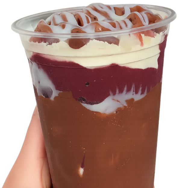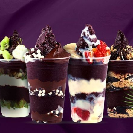 4 copos de 500ml de açaí premium, cada copo com até 4 adicionais grátis