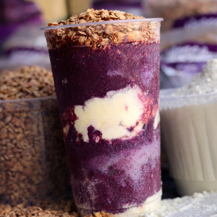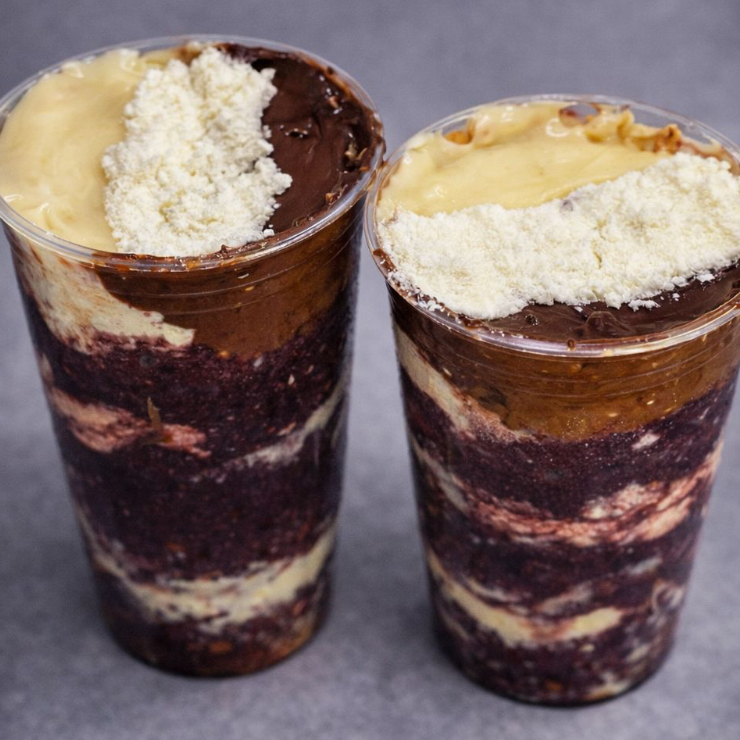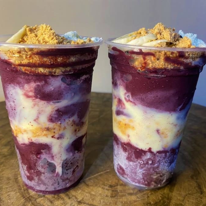 2 copos de 500 ml de açai , com leite condensado,leite em pó e muita paçoca crocante