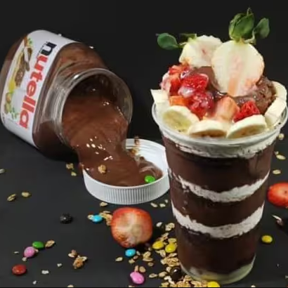 4 Copos de 500ml com leite condensado, leite em pó, granola e creme de avelã