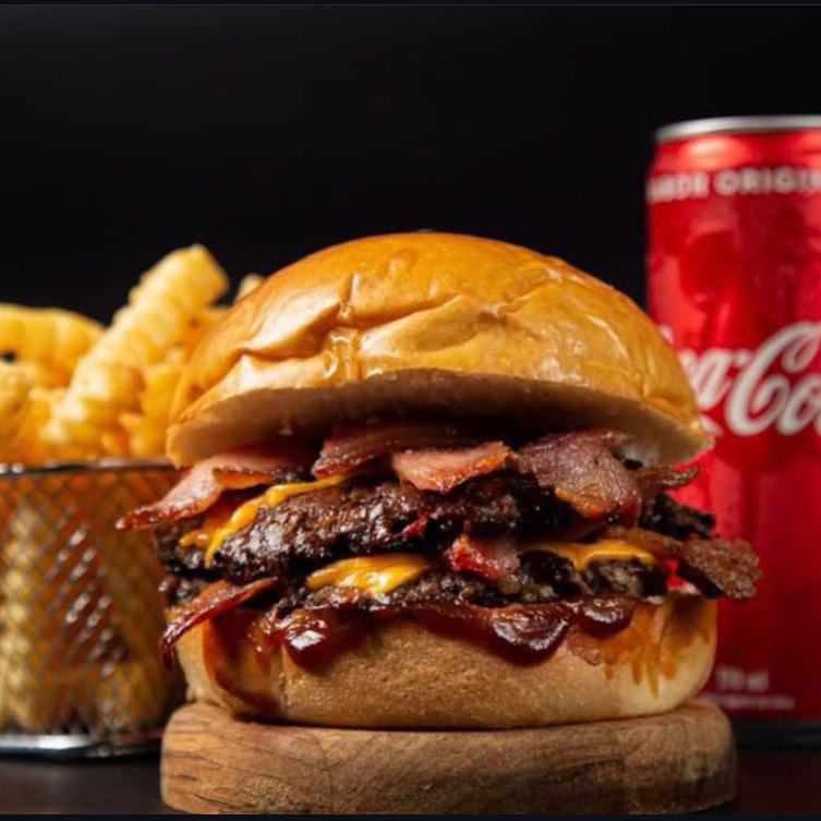 Este combo leva 1 hambúrguer (Pão grelhado na manteiga, 2 hambúrgueres artesanais de 120g, queijo cheddar e bacon) + batata frita P150g in nature + refrigerante. )