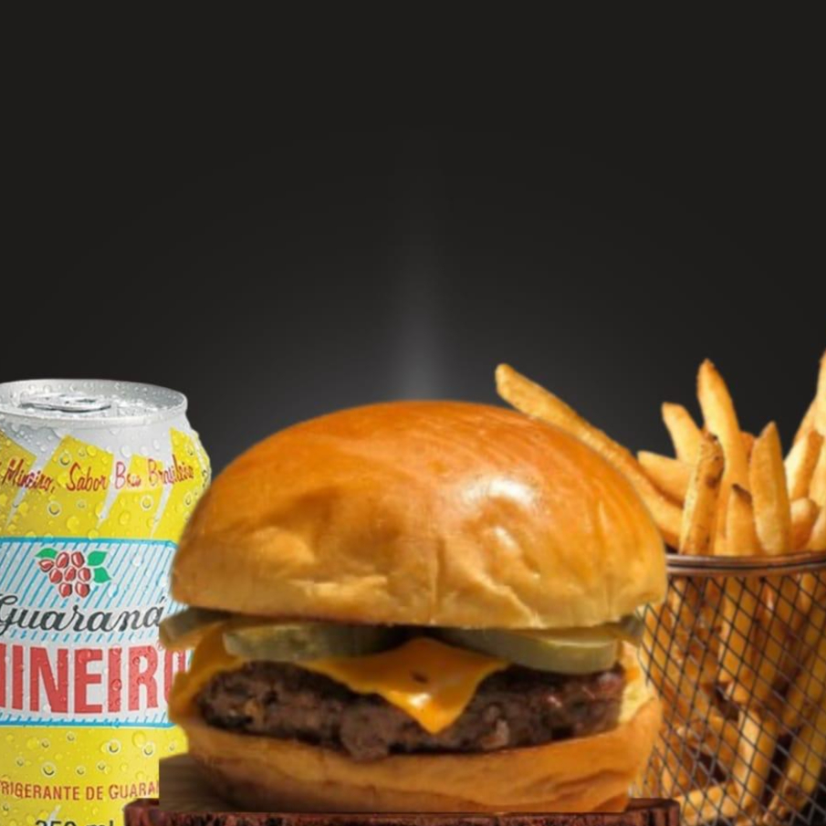 Leva um delicioso pão macio, hambúrguer artesanal de carnes selecionas frescas de 120g, queijo cheddar e picles. uma combinação irresistível +batata frita P de 150g in nature + refrigerante