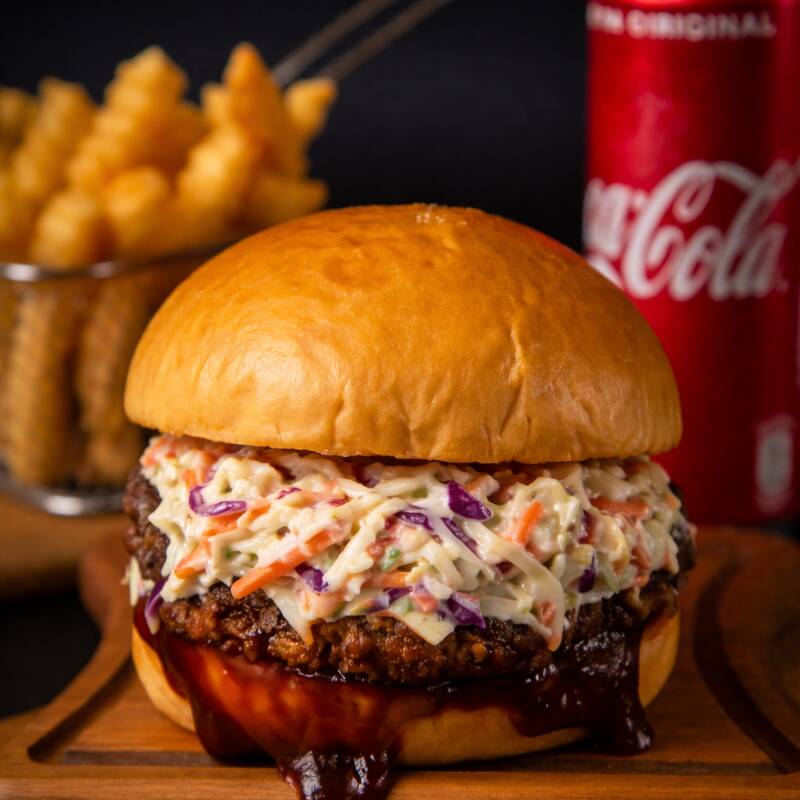 Este combo leva pão fresquinho, hambúrguer artesanal de 120g, queijo cheddar e salada coleswan + batata frita 150g in nature + refrigerante (Obs: leva molhos separadamente)