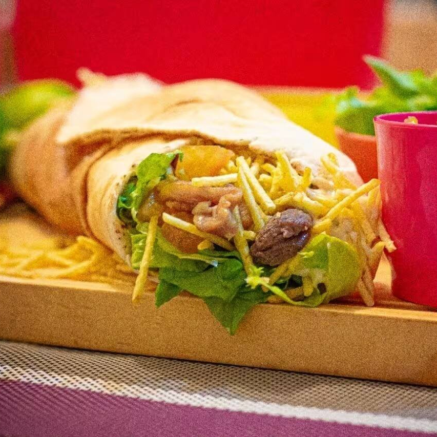 Shawarma : Misto Carne Bovina E Frango : Com Milho E Batata Palha .