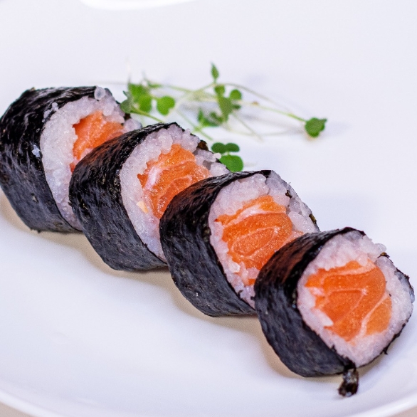 4) Hossomaki fila,4) niguiri especial,4) niguiri de salmão,4) uramaki,4) gunka filadélfia, 4)Sashimi de salmão.