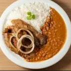 Esta refeição substanciosa vem acompanhada de arroz fresco e feijão caseiro, cozido lentamente para realçar o sabor. Este prato é a combinação perfeita de sabor e conforto que você procura para satisfazer seu apetite.
