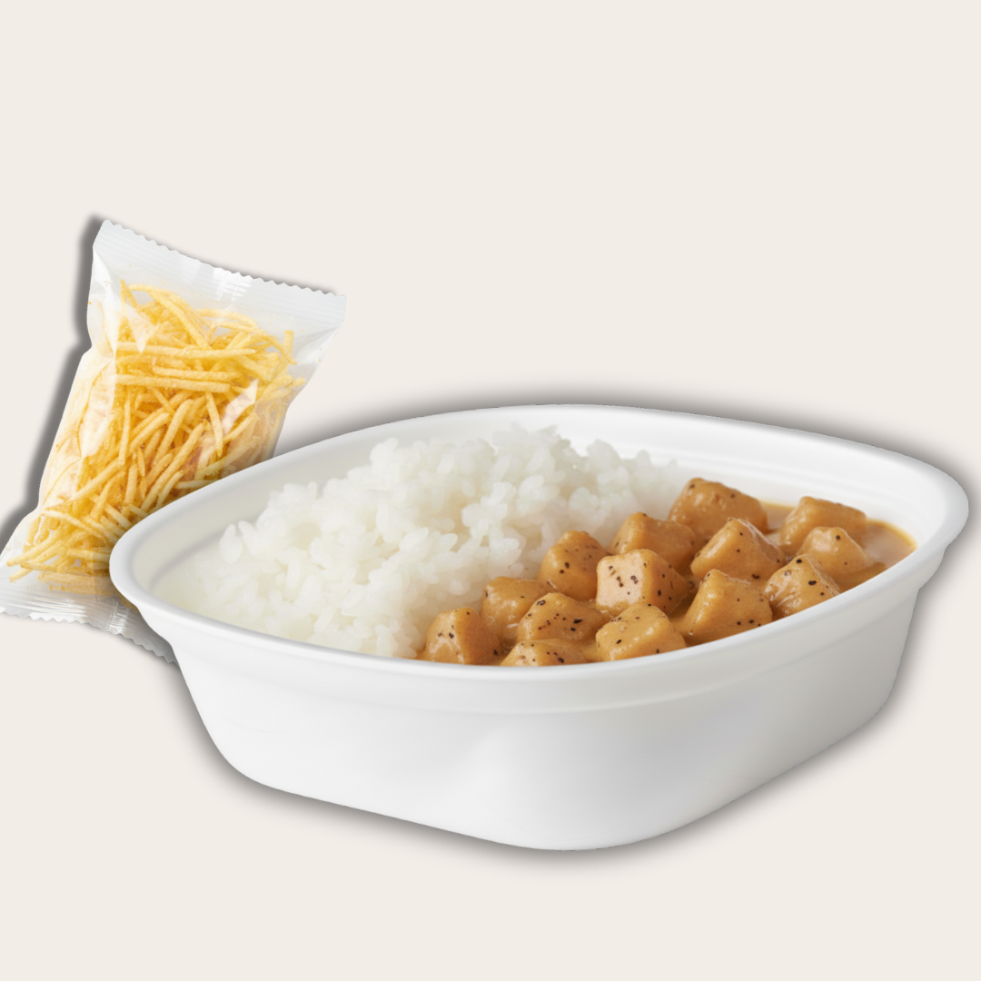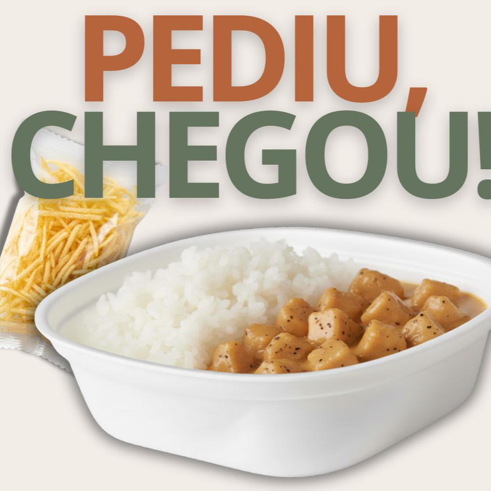 Frango em cubos com temperos naturais e arroz branco. Acompanha batata palha. Embalagem com 300g.