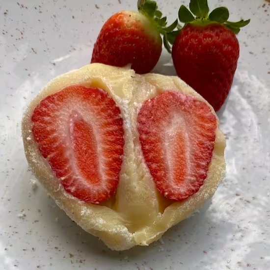 Coxinha de morango com brigadeiro de ninho, aproximado 65 gramas