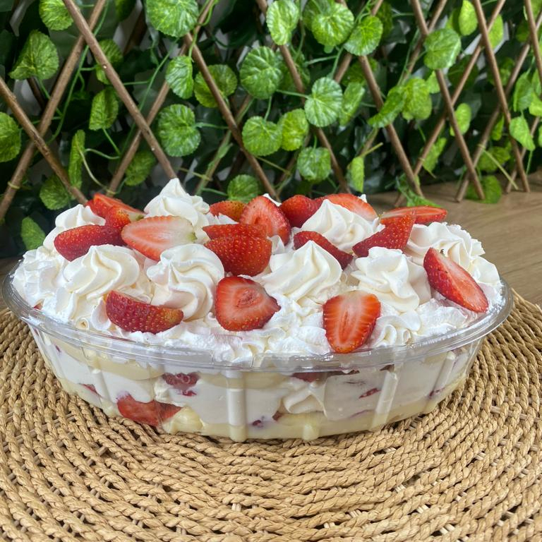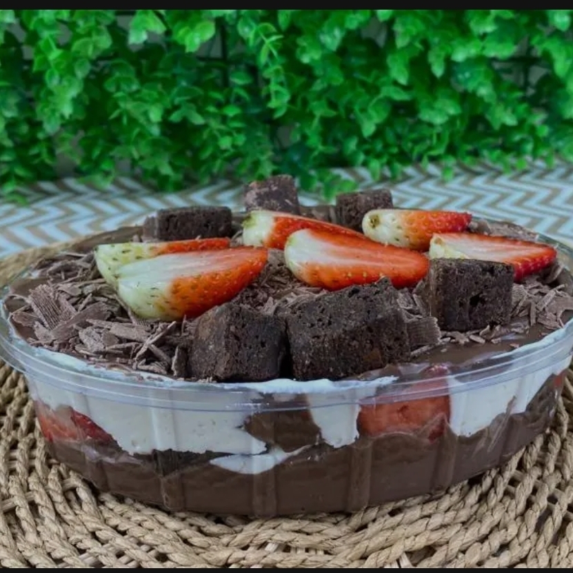 Combinação perfeita de creme de chocolate, mousse de ninho, morangos frescos e brownie intenso. Peso aproximado 650gr