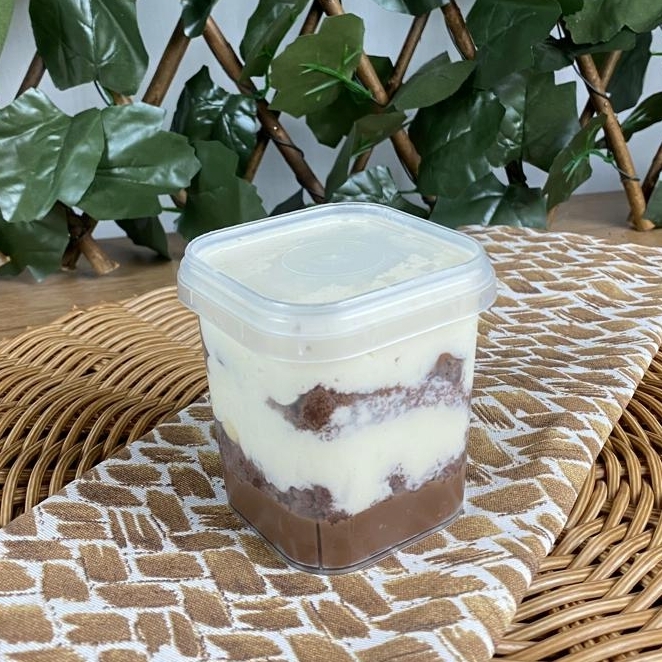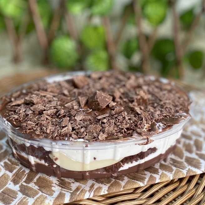 Finas camadas de massa de chocolate, intercalado com creme de brigadeiro ao leite e ninho .Pote de 220ml. serve uma pessoa