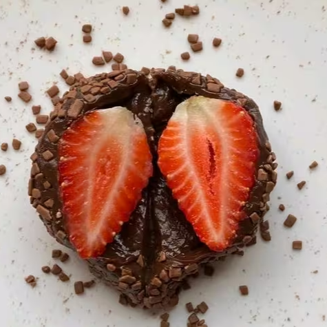 Coxinha de morangos com brigadeiro tradicional ao leite, envolto no granulado de chocolate, peso medio 65 gramas