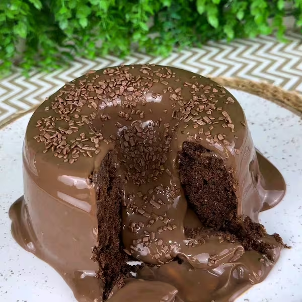 Bolo caseiro de chocolate, cobertura de brigadeiro cremoso de chocolate ao leite, furo com brigadeiro de ninho, peso medio 750 gramas, serve media 4 pessoas