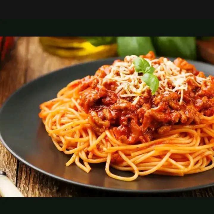 Desfrute dessa deliciosa massa italiana, um espaguete banhado ao molho vermelho bem temperado, agregado a uma generosa porção de carne bovina moída, finalizado com bastante mussarela ralada e cebolinha