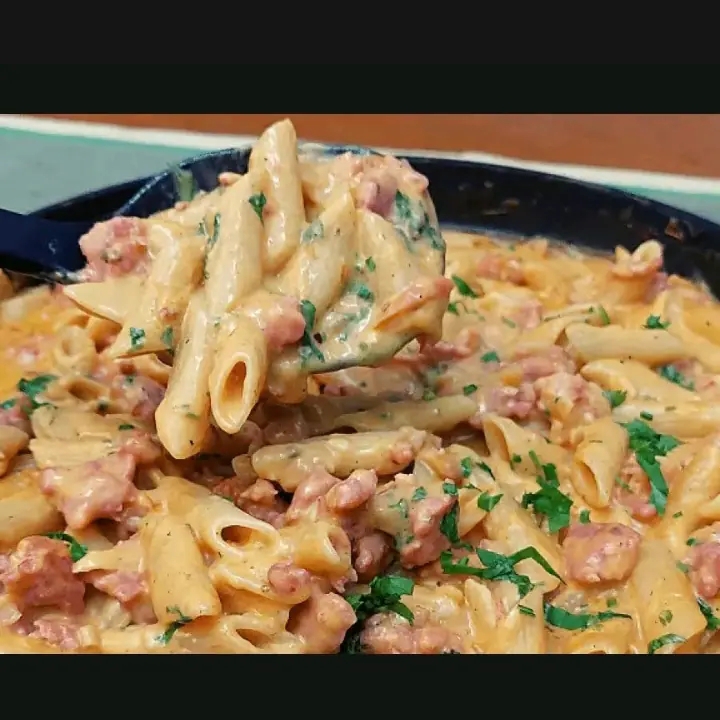 Espaguete Ao Molho Rosé Com Linguiça De Frango