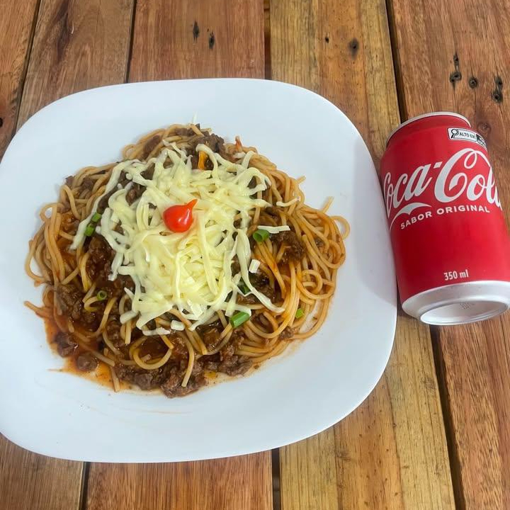 Espaguete À Bolonhesa + Refrigerante 350 Ml