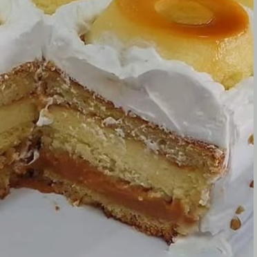 A combinação perfeita: bolo fofinho + pudim cremoso + muita calda. Servido gelado.