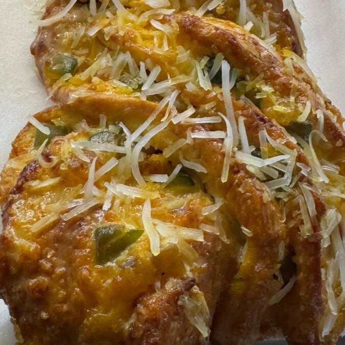 Esfiha tradicional, com massa macia e assada no ponto certo, recheada com carne moída temperada com especiarias especiais, garantindo sabor marcante e suculento.