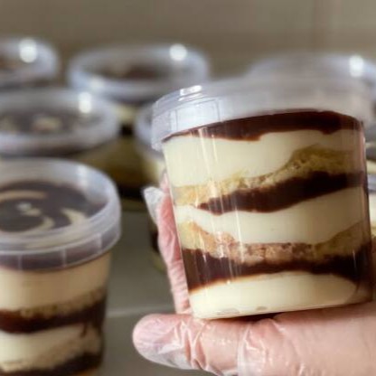 Delicioso bolo no pote com camadas de massa fofinha, creme de leite Ninho super cremoso e chocolate irresistível.
