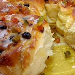 Rosca macia e fofinha, preparada com massa artesanal e enriquecida com frutas cristalizadas selecionadas, que trazem um toque adocicado e especial a cada pedaço.