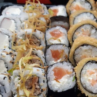 Alga , Arroz , 80 gm de salmão e cheem chesse