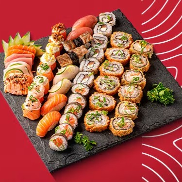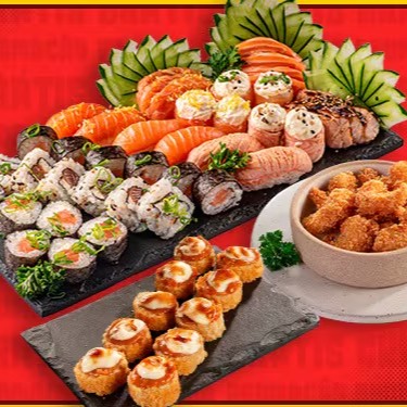 Itens: 1 Harumaki de Legumes 1 Harumaki de Camarão 3 Bolinho D'ouro 8 Sashimi Salmão 4 Sashimi de Atum 4 Sushi Salmão 2 Sushi Atum 5 Joe Joe Crispy 6 Roll Uramaki Salmao 6 Roll Philadelphia Salmao 6 Roll Philadelphia Atum 12 Hot Roll Philadelphia Salmao 6 Hot Roll Skin 6 Hot Roll Philadelfia Ebi (Camarão) 1 Harumaki de Choco Duo 1 Harumaki de Banana Nevada (Acompanha 2 Molho Teriyaki + 1 Molho Swe