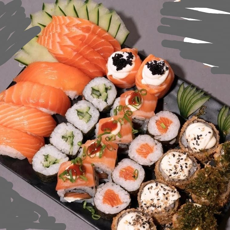 90 Peças50 Sushi 10 Guncas 10 Sashimi 20 Hot