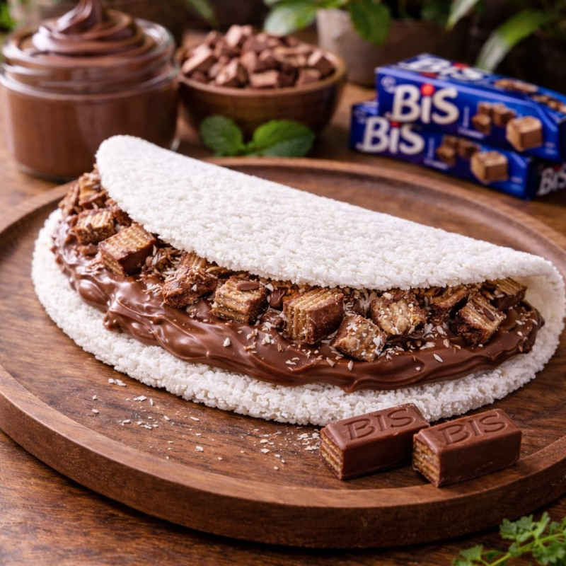 Tapioca recheada com bis e Nutella
