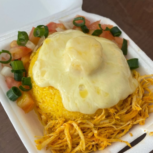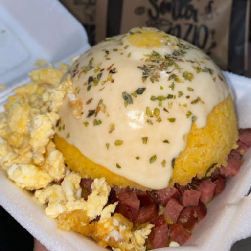 Cuscuz recheado com calabresa bacon ovo tomate cebola vinagrete da casa catupiry mussarela para finalizar
