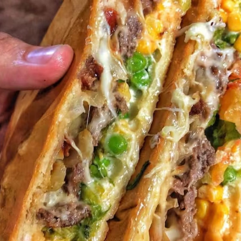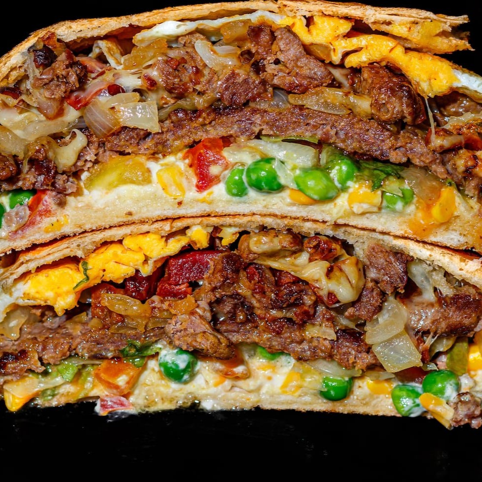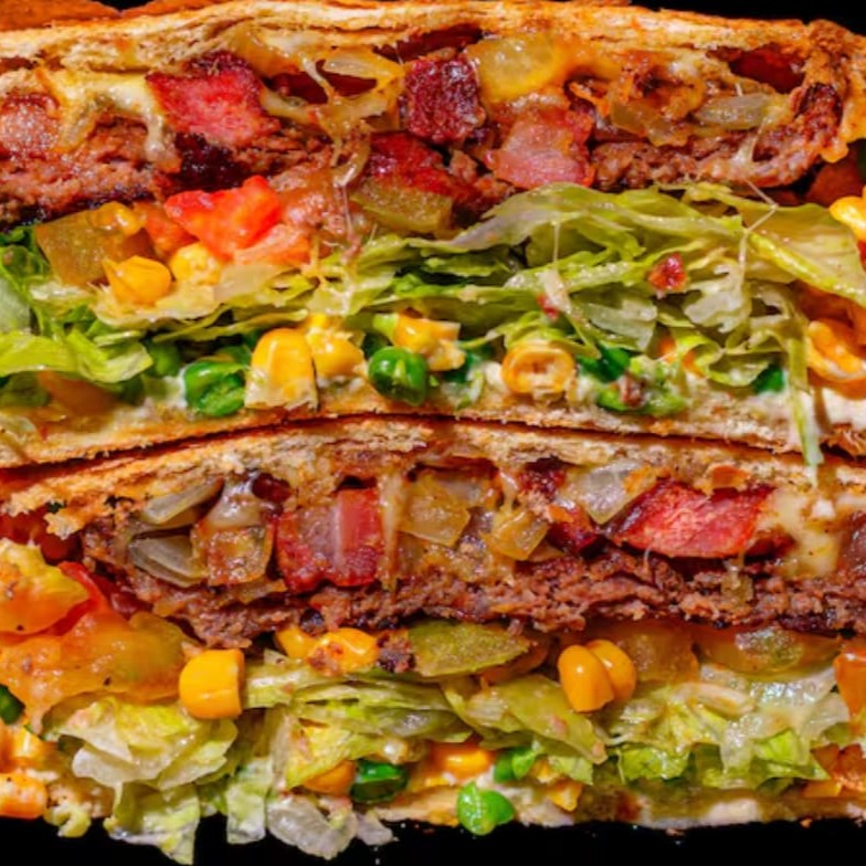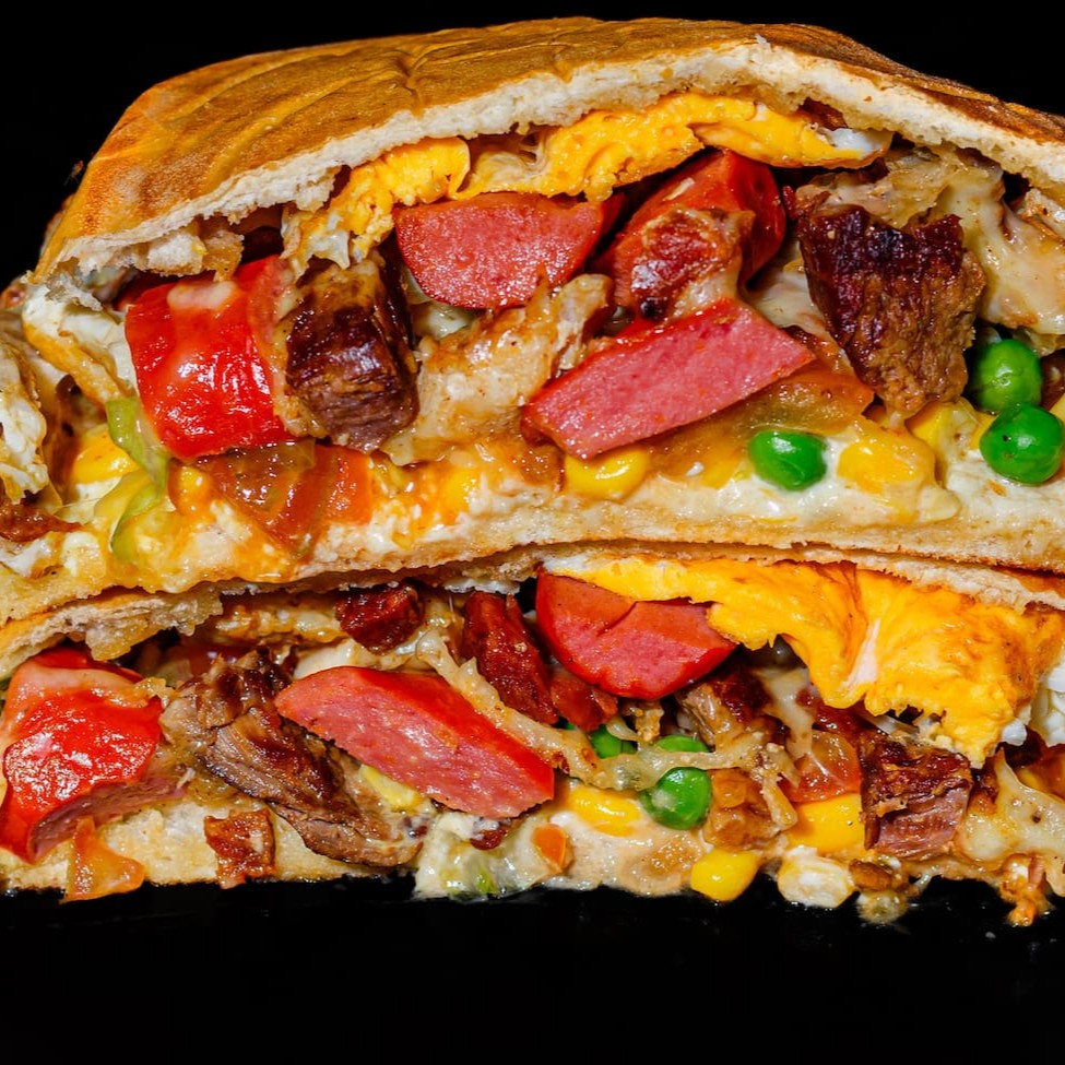 Simplesmente Gigante!!É muita carne galera, vocês não tão entendendo servem até 2 Pessoas.Hambúrguer Angus (130g) suculento e saboroso, Filé mignon picadinho feito na chapa, muito maciooo!! Ai vem o bacon fritinho em cubos na chapa para dar aquele sabor surreal, sem contar com a cebola na chapa para o toque especial.Acha que acabou ainda não rss tem 1 ovo na chapa, até porque tava com pouca proteí