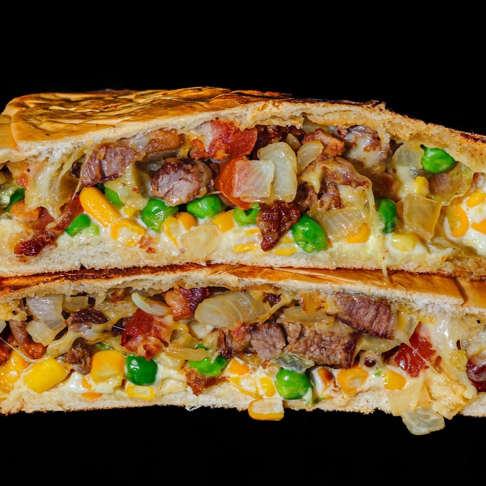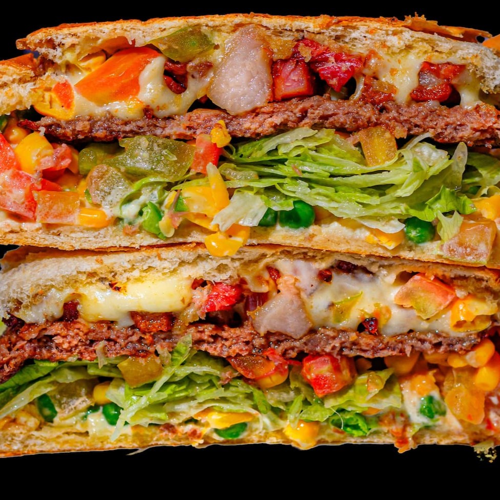 São 90g do nosso hambúrguer angus extremamente suculento coberto por muito queijo muçarela, cubos de bacon fritinho, milho verde, ervilhas frescas, alface americana, tomatinho picadinho, ketchup, mostarda e a nossa amada maionese tchê. Servido no clássico pão da casa de fabricação própria bem selado e prensado.