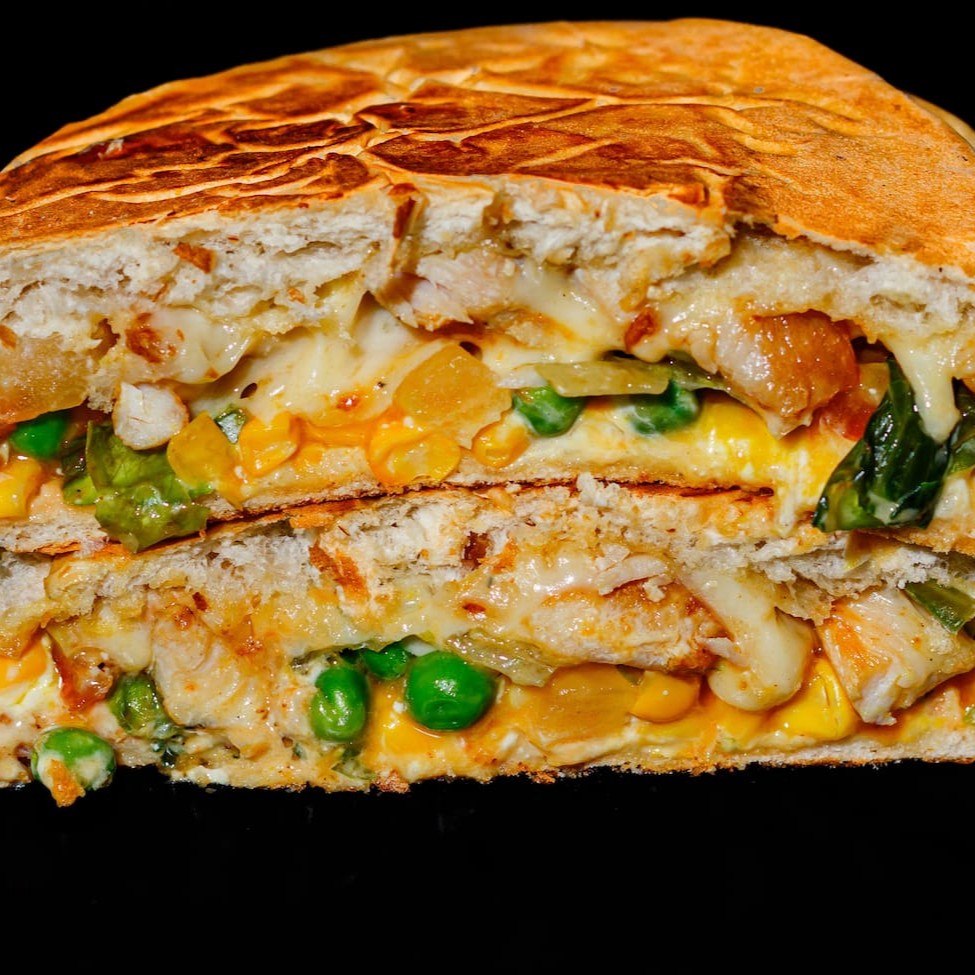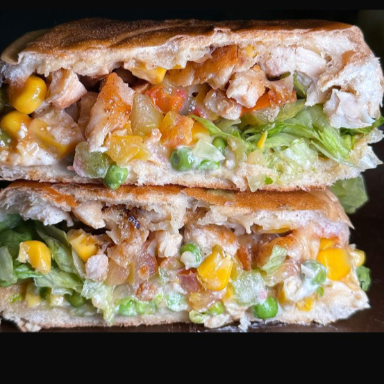 Para quem ama um filézinho de peito grelhado apresentamos o Gaudério. São 80g de filé de peito de frango picadinho direto na chapa coberto por muito queijo muçarela derretido, milho verde, ervilhas frescas, alface americana, ketchup, mostarda e a nossa deliciosa maionese tchê. Servido no nosso pão de fabricação própria extremamente macio, selado e prensado.