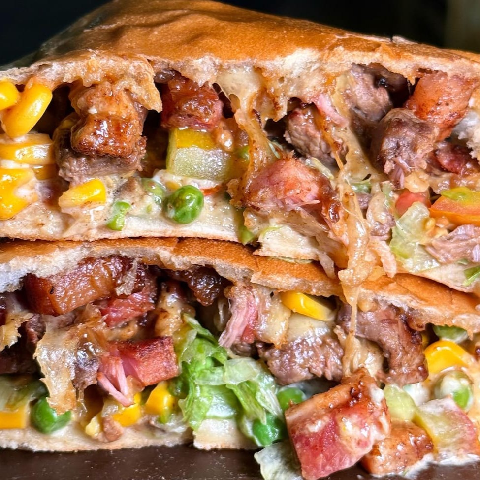 Nossa versão aprimorada do clássico xis tudo goiano! Na nossa versão ele vai 130g de filé mignon chapeado com cebola, peito de frango picadinho em cubos grelhados, bacon fritinho em cubos, salsicha picadinha, ovinho frito, tomatinho picado, ervilhas frescas, milho, alface americana, ketchup e mostarda e pra finalizar a nossa deliciosa e clássica maionese tchê! Servido no nosso delicioso pão extremamente macio feito na casa.